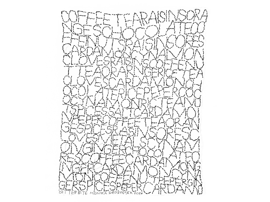 Pierwsza z prac jest poświęcona produktom spożywczym. Rodzynki, cynamon, kawa, herbata, to tylko część z tych, których kolonialne dziedzictwo stało się przeźroczyste, niewidoczne w użyciu.