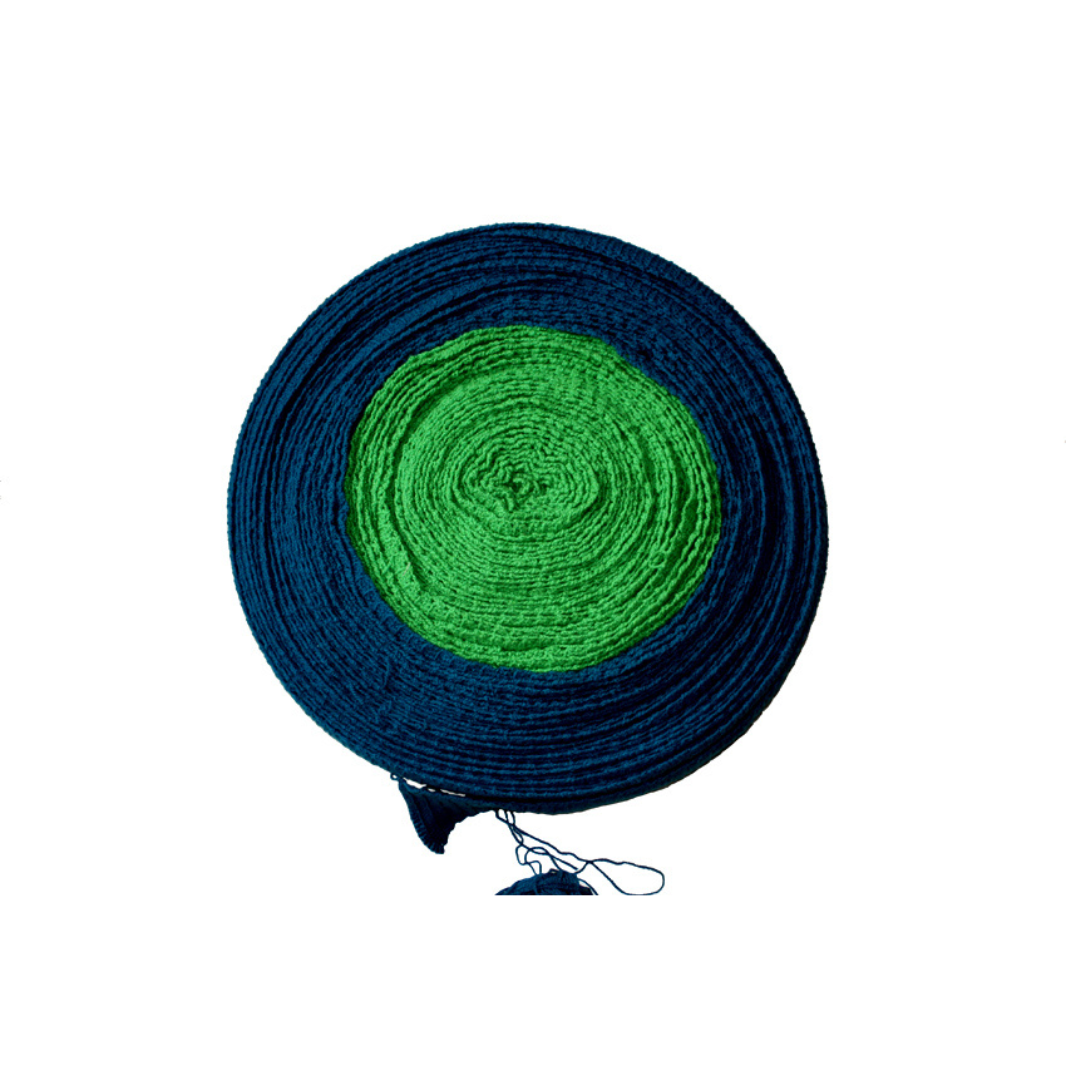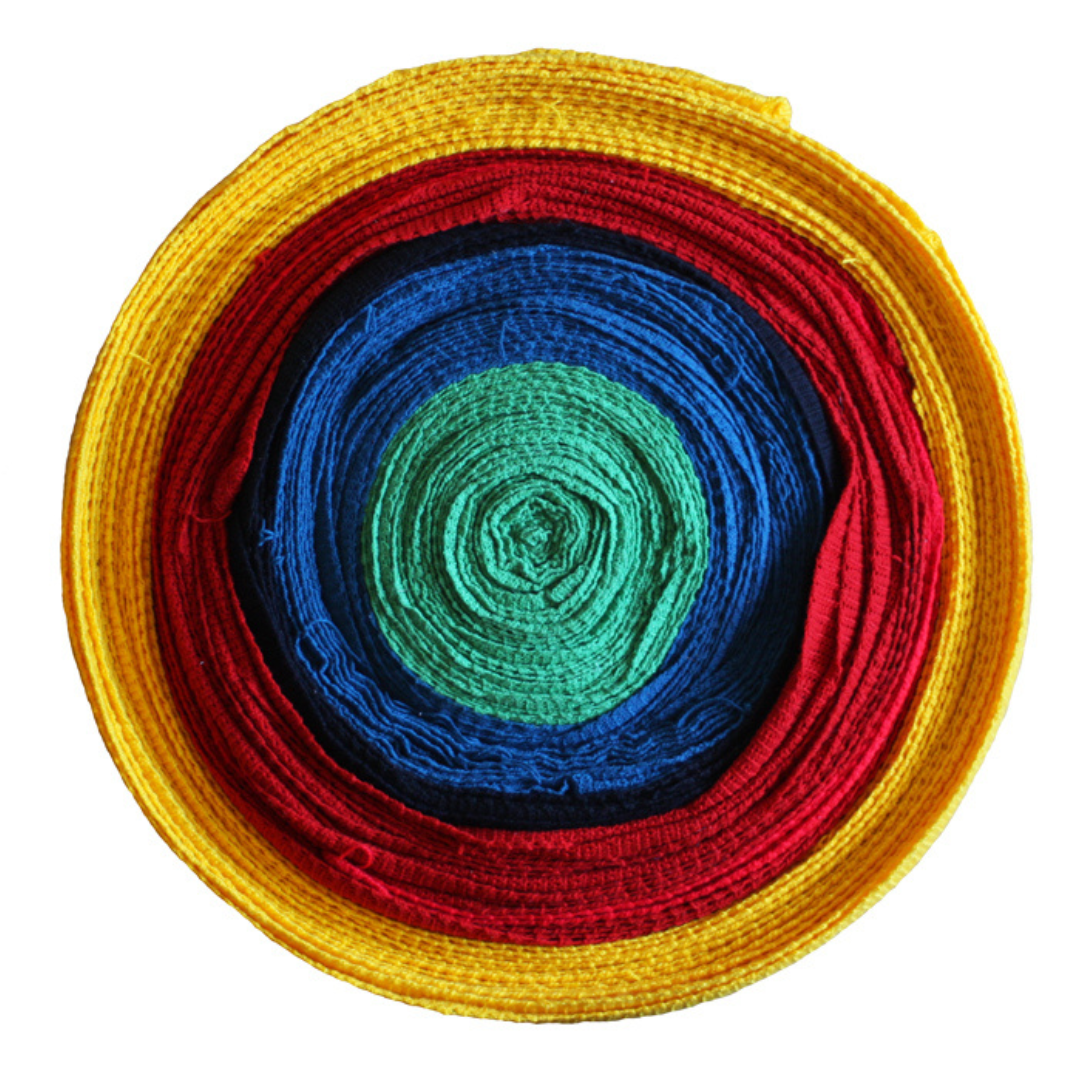 To szalik o długości 180 m zwinięty w rolkę, zrobiony w wolnym czasie przeznaczonym na odpoczynek. Robiłam go szydełkiem, z włóczki w różnych kolorach, przyporządkowanych do roku, w którym jest stworzony. Szydełkując, odliczałam poszczególne momenty między wcześniej, teraz i później – między oczkiem, odcinkiem, w końcu kolorem.