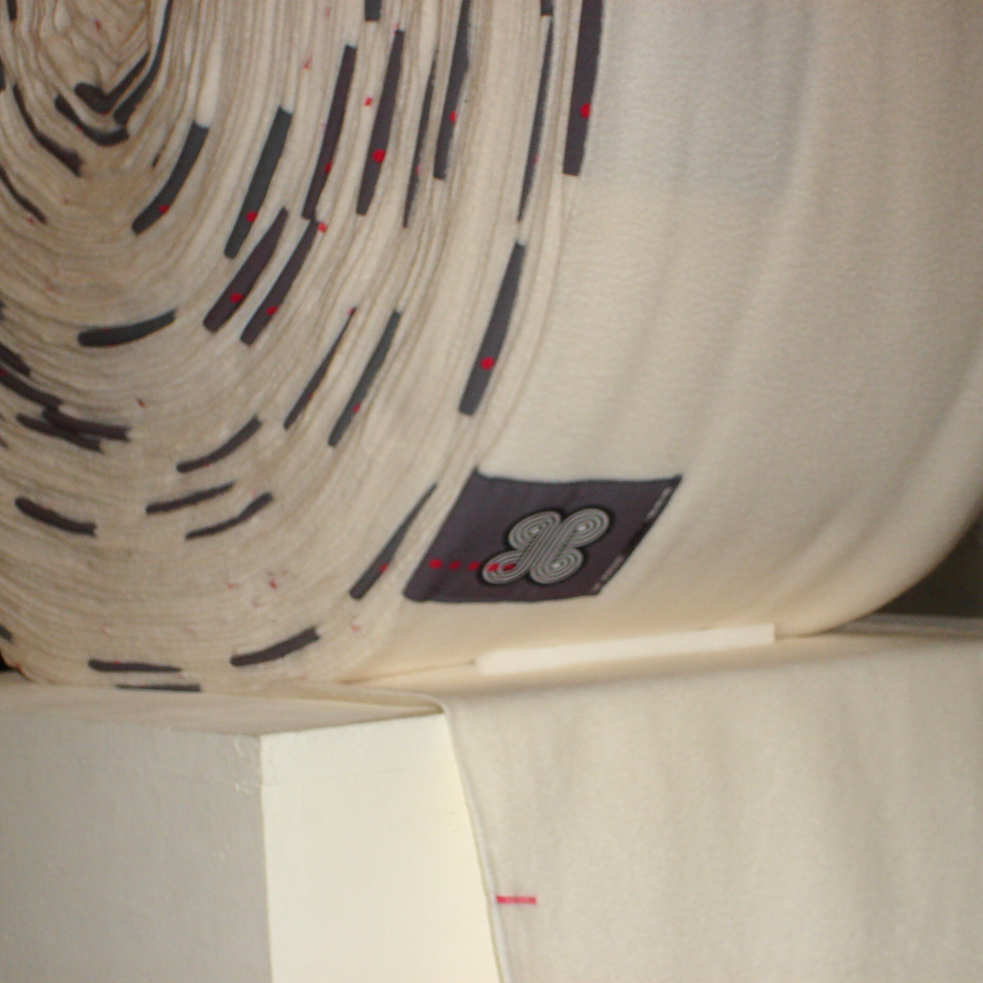 Szalik na metry to 135-metrowa tkanina nawinięta na rolkę o wysokości jednego metra.