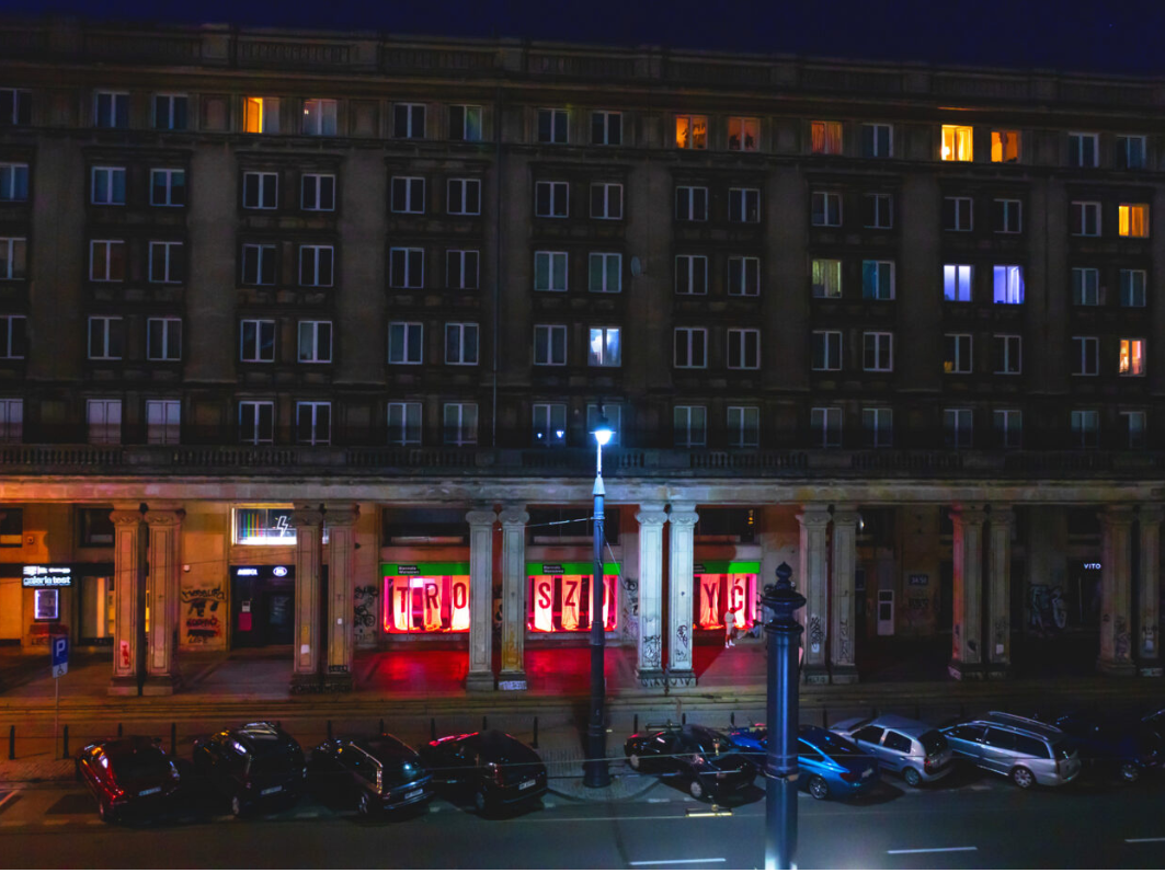 Troszczyć znaczy opiekować się, dbać o kogoś, o coś, o siebie. W języku polskim troska to również zamartwianie się, zgryzota i trauma. Czy codzienną martyrologię może zastąpić uważność i oddanie? Drożyńska w pracy Troszczyć prezentowanej w witrynach Biennale Warszawa podejmuje temat etyk i polityk troski oraz emocji związanych z opieką.