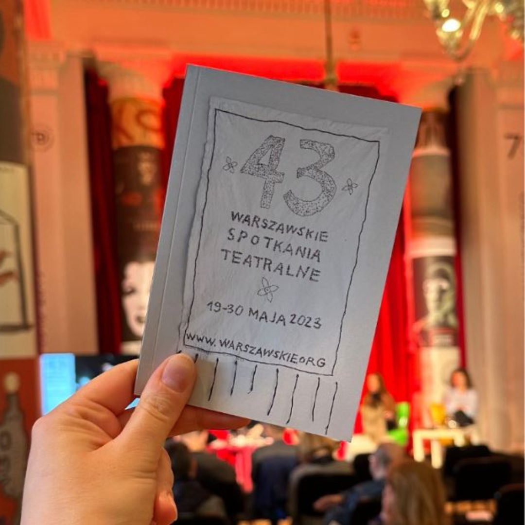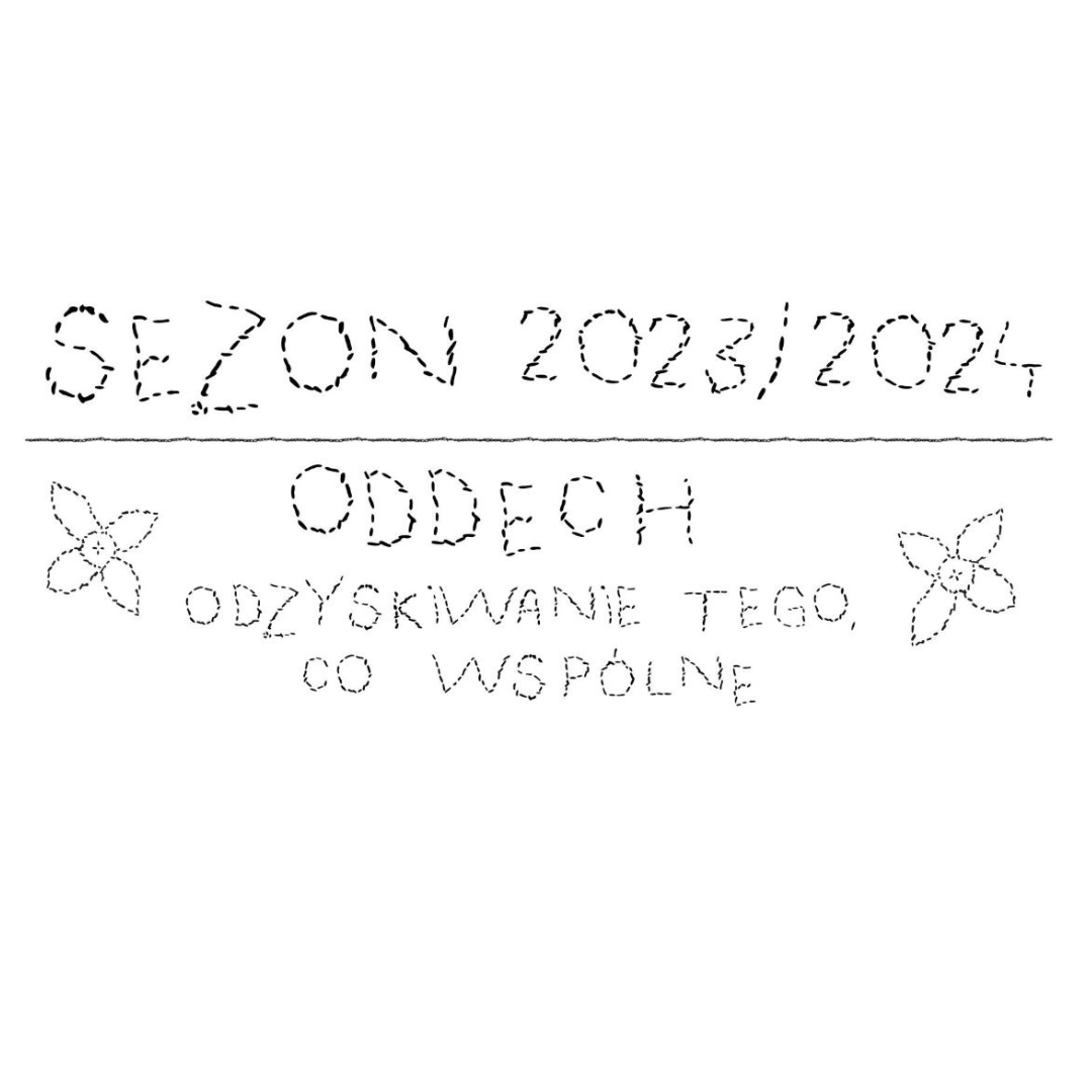 „Less is enough, myślę, kiedy patrzę na wykonany przez Drożyńską proporzec, który jest zarazem plakatem 43 Warszawskich Spotkań Teatralnych. Czarne napisy wyhaftowała ręka mniej dokładna, pośpieszna, pozwalająca sobie na nonszalancki gest redukcji, gotowa do innych radykalnych gestów. Od czasów, kiedy widziałam w warszawskich podziemiach bilbord z pracą Drożyńskiej, rzeczywistość miasta jeszcze mocniej pokryła się warstwą prężących się obrazów-towarów. Mamy tu całe domy, które od lat istnieją tylko jako rusztowania dla wielkoformatowych reklam, zasłaniających prowadzone rzekomo remonty. Wchodząc do metra, możemy się poczuć jak bohaterowie odcinka „Black Mirror”, nieustannie zmuszeni do oglądania reklam emitowanych na świetlnych ścianach swoich podziemnych cel-dormitoriów. Świat wlewa się nam przez oczy prosto do mózgu. Drożyńska znów mówi: pamiętaj, istniejemy jako ciała, ale tym razem jest w tym zarówno więcej siły, jak i więcej kruchości. Dekada dzieląca nas od „miejskich haftów”, których częścią był przywołany przeze mnie bilbord, to cała epoka. Drobne czarne kwiaty i czarne nierówne litery proporca WST kumulują w sobie niewypowiadalny ciężar naszych czasów. Dłonie, które je wyhaftowały, mają w sobie determinację ciała rozpoznającego nieoczywistości swojego istnienia. Znów biorę głębszy oddech, tym razem świadoma, że to przywilej, być może chwilowy. Plakat-proporzec WST jest zarazem dziecięcą wyszywanką i klepsydrą. Na ulicach Warszawy wiosna „spaliną oddycha”, a my idziemy do teatru, który jest spotkaniem ciężkich ciał – celebracją życia”.