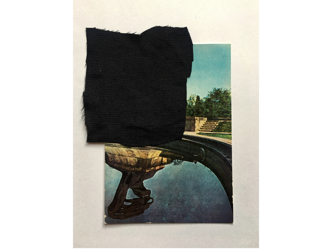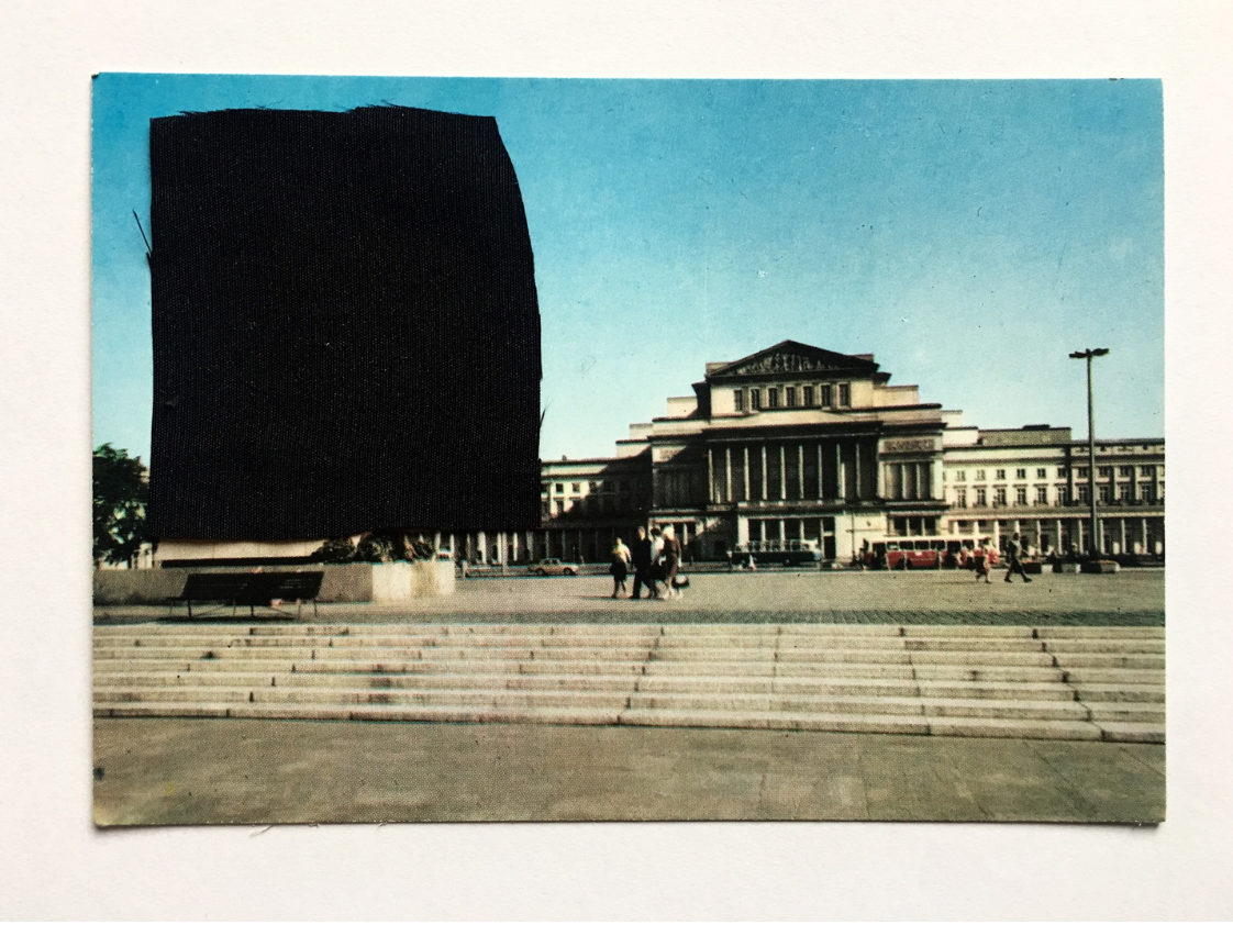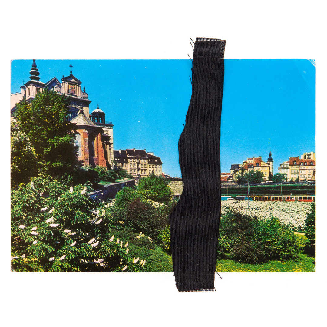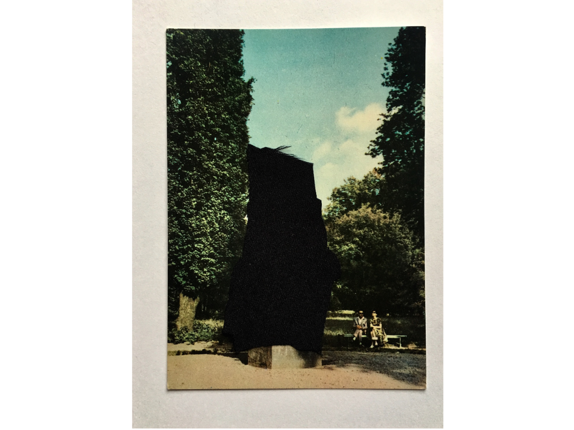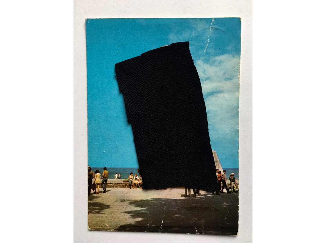 Cykl prac wykonany techniką kolażu – przy użyciu czarnej tkaniny – na starych pocztówkach.