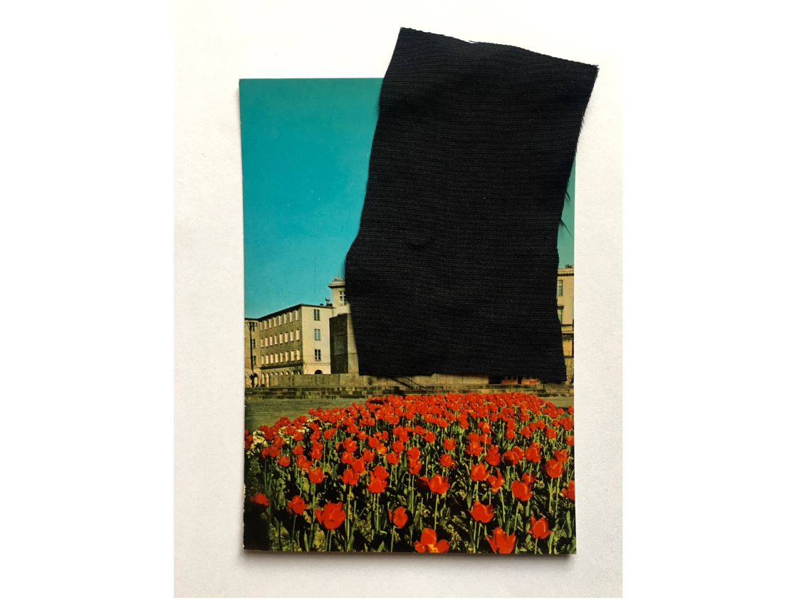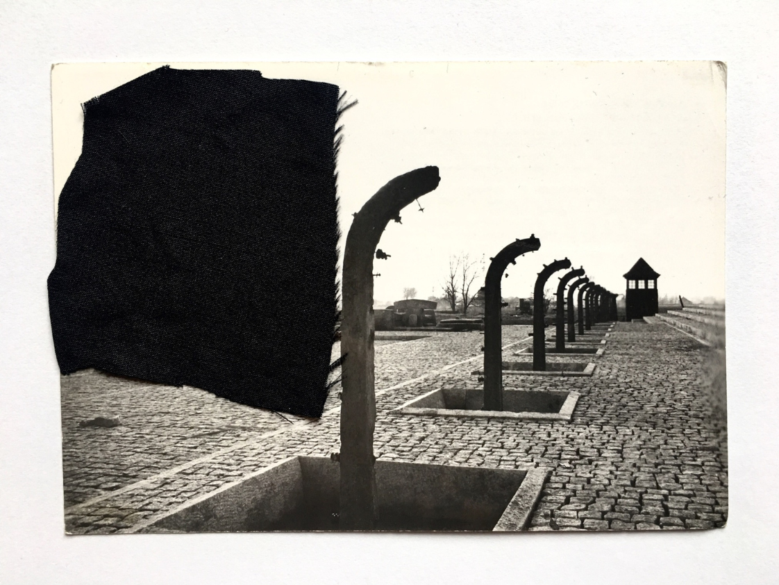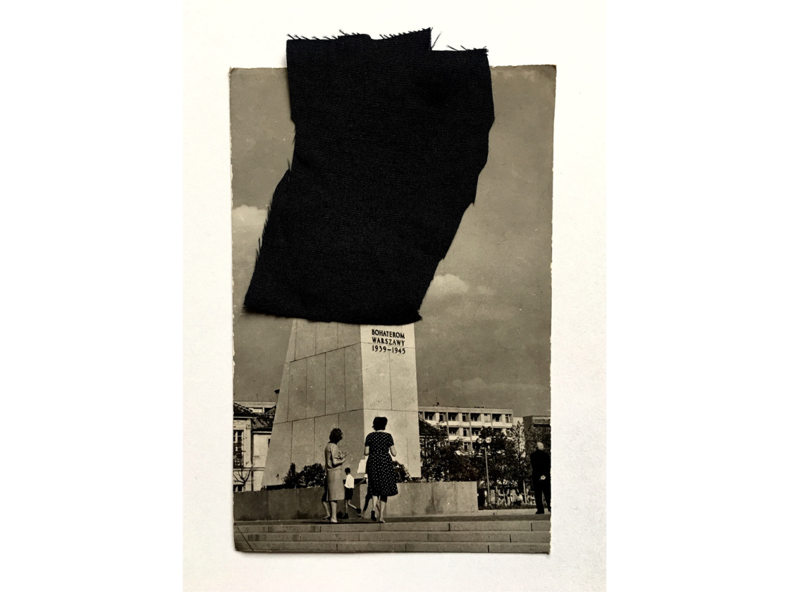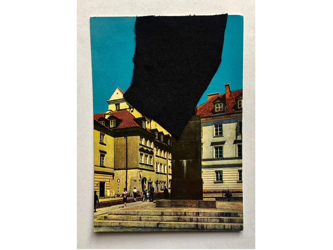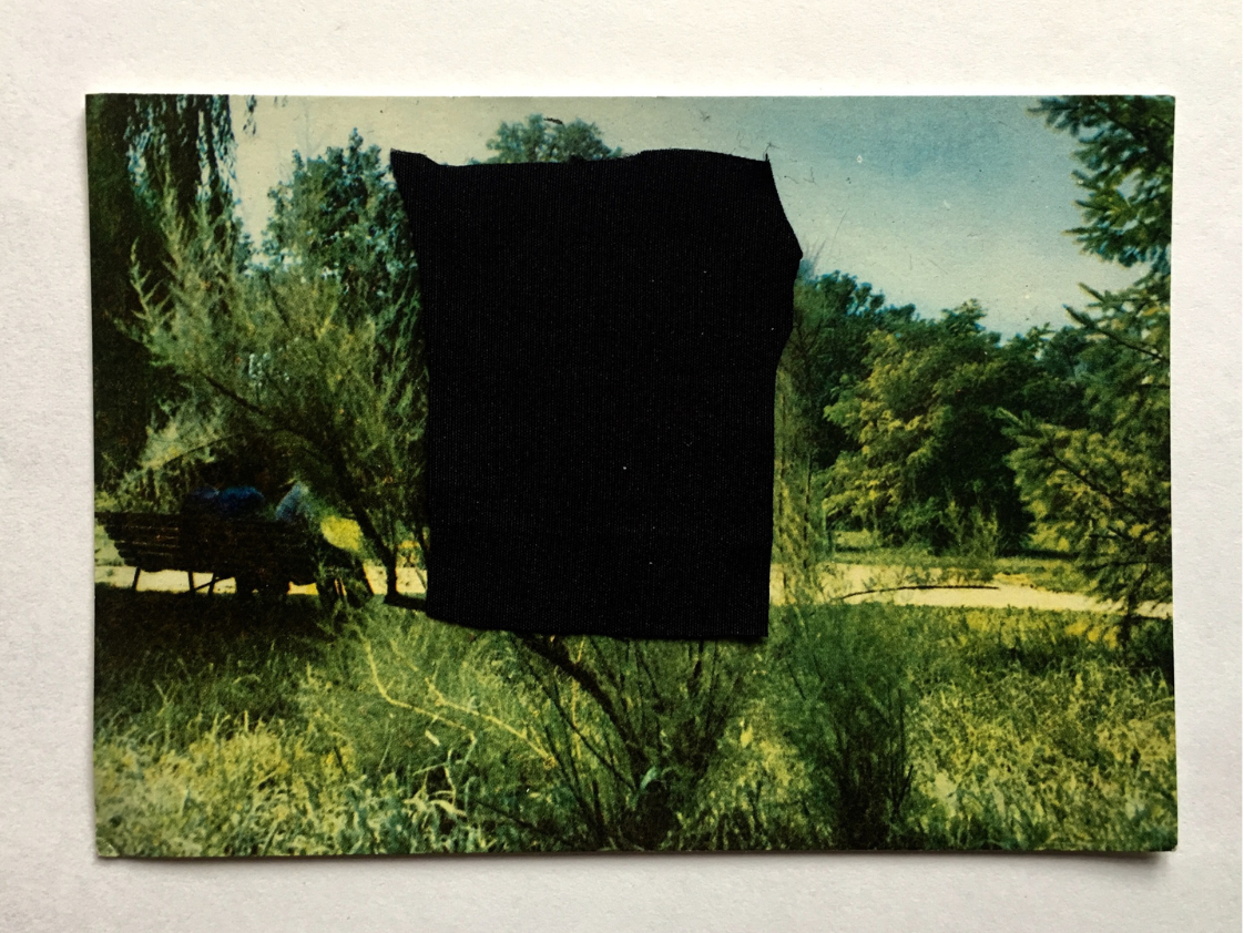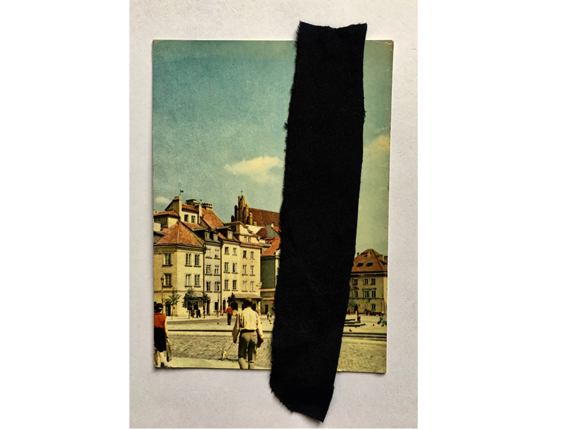 Cykl prac wykonany techniką kolażu – przy użyciu czarnej tkaniny – na starych pocztówkach.