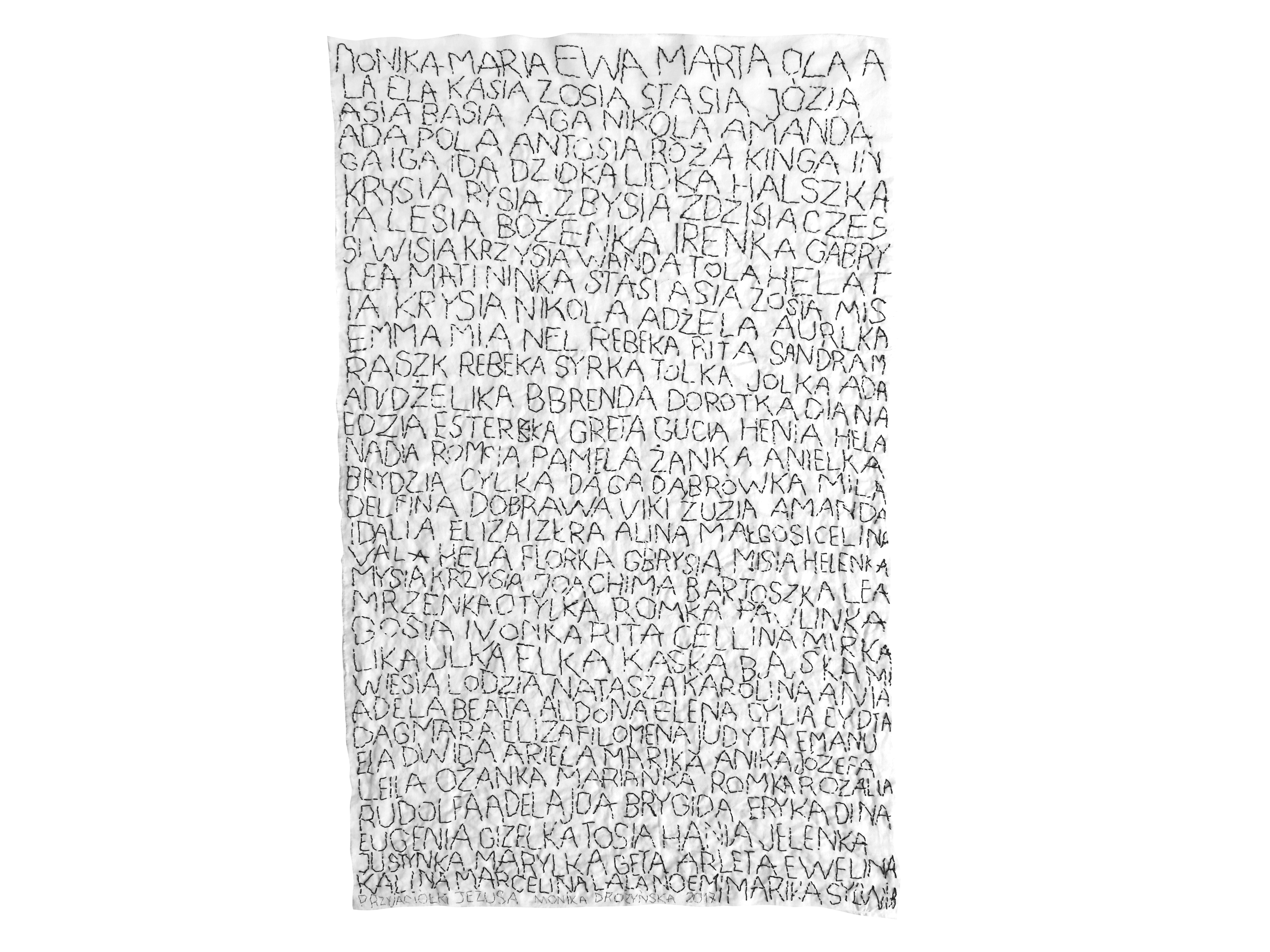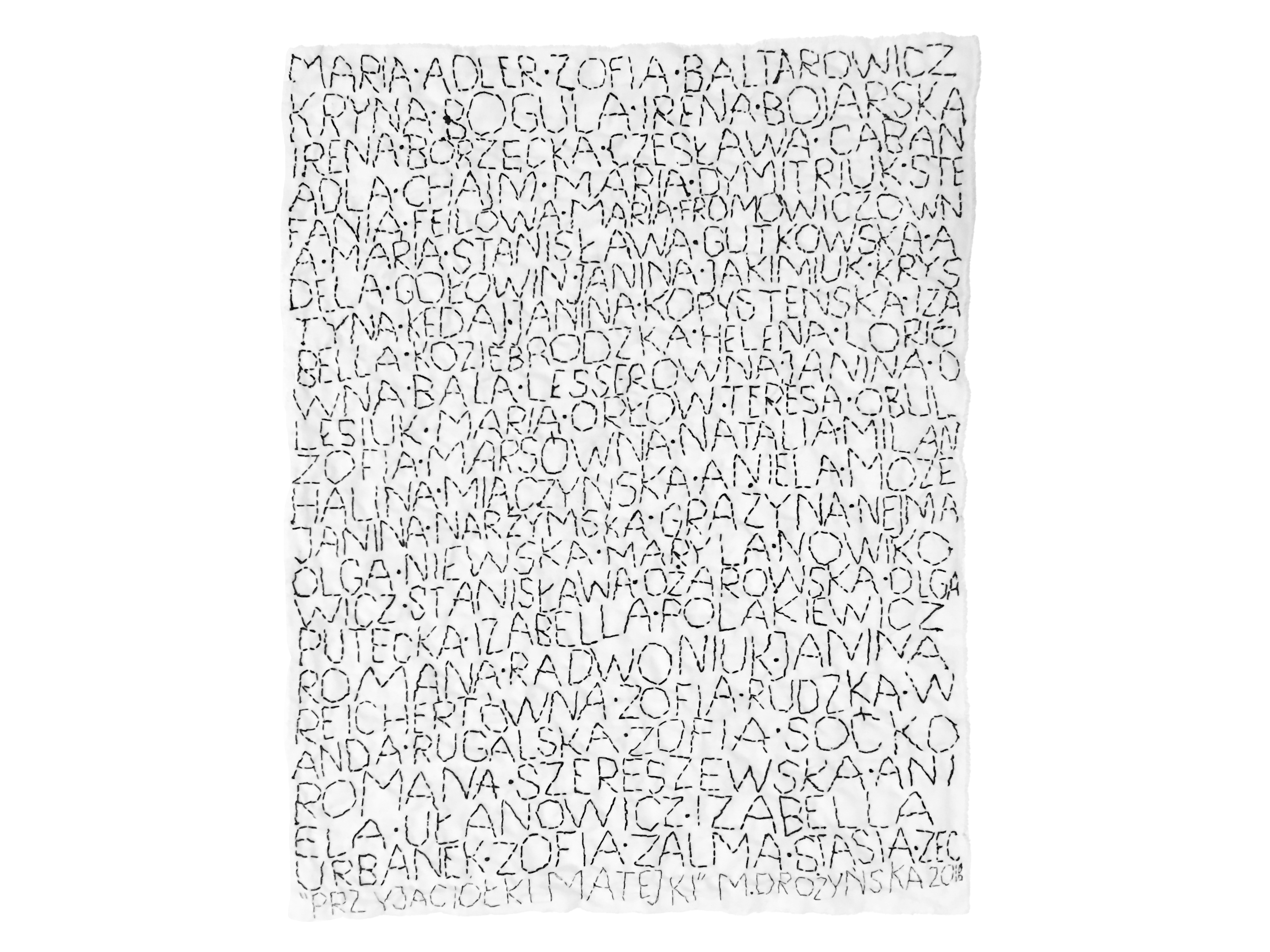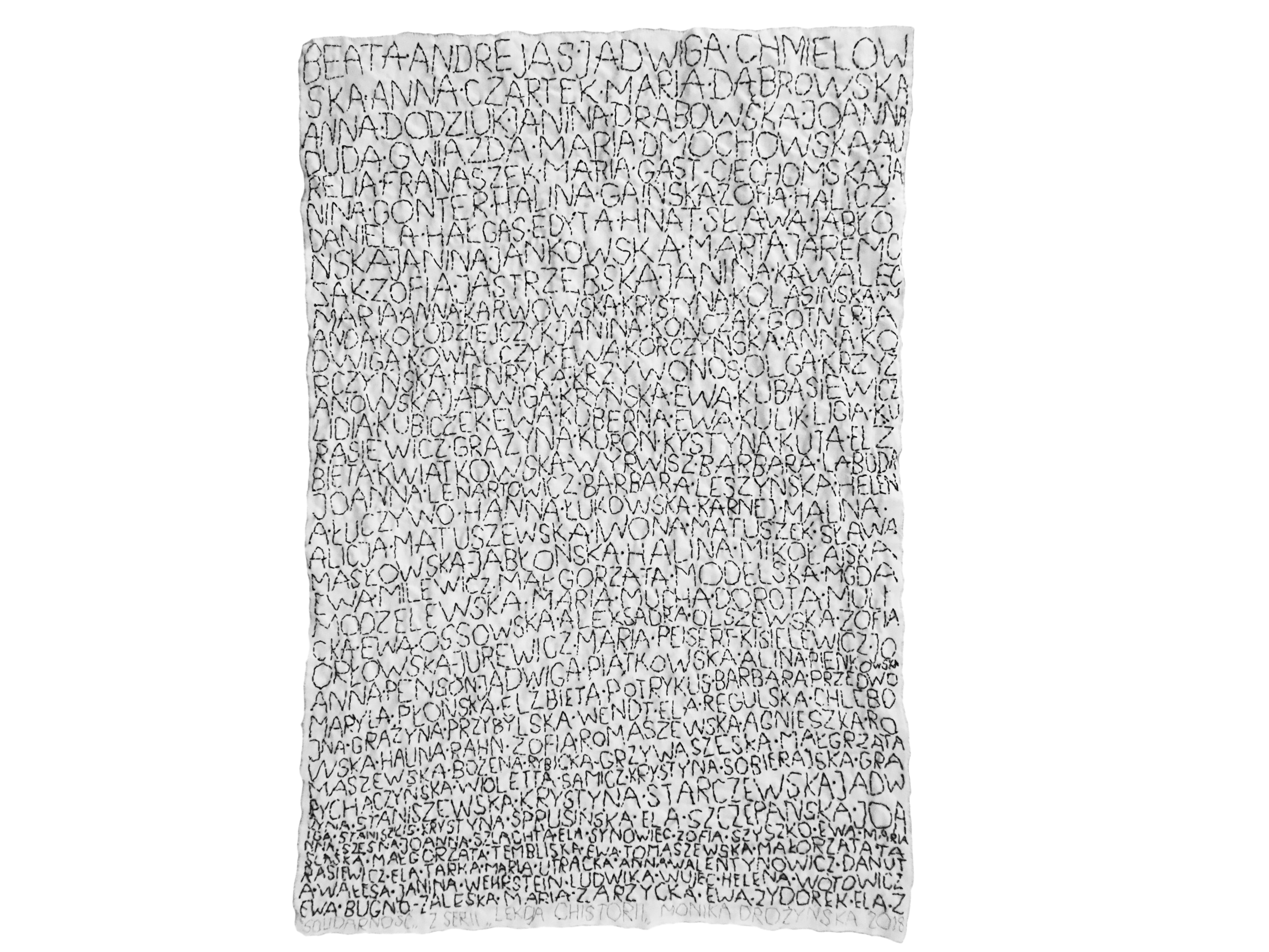 This series of artworks is dedicated to the memory of women whose names have not been recorded in history. The artist chose several periods in Polish history that saw numerous groups of women participated in politics, science, culture, and contributed to regaining independence (League of Women), transformation (female Solidarity members) or attended university as first ever female students. To date, Drożyńska created: Friends of Matejko, Friends of Jesus, Friends of Wałęsa, and Friends of Piłsudski.