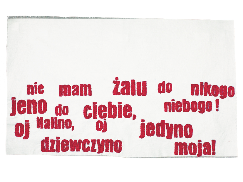 A series of textiles hand embroidered with fragments of the libretto to Stanisław Moniuszko’s opera, Halka. The project was carried out at the invitation of Teatr Wielki – Polish National Opera and accompanied the premiere of Halka directed by Natalia Korczakowska.