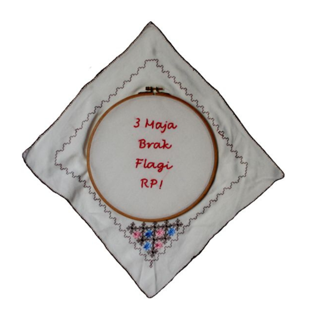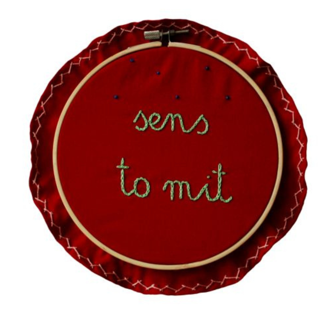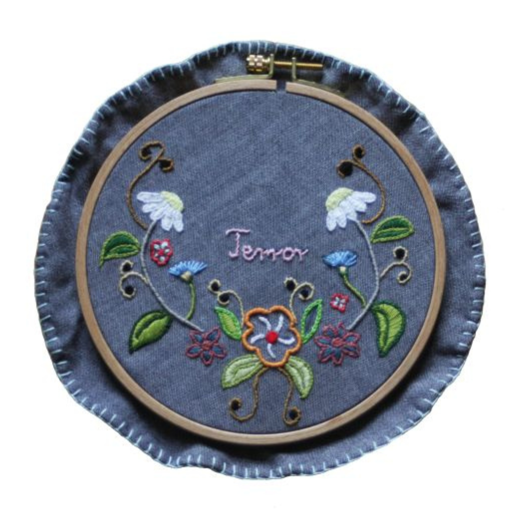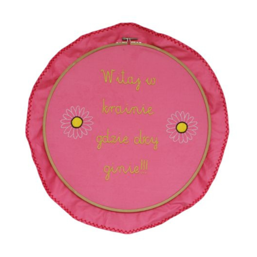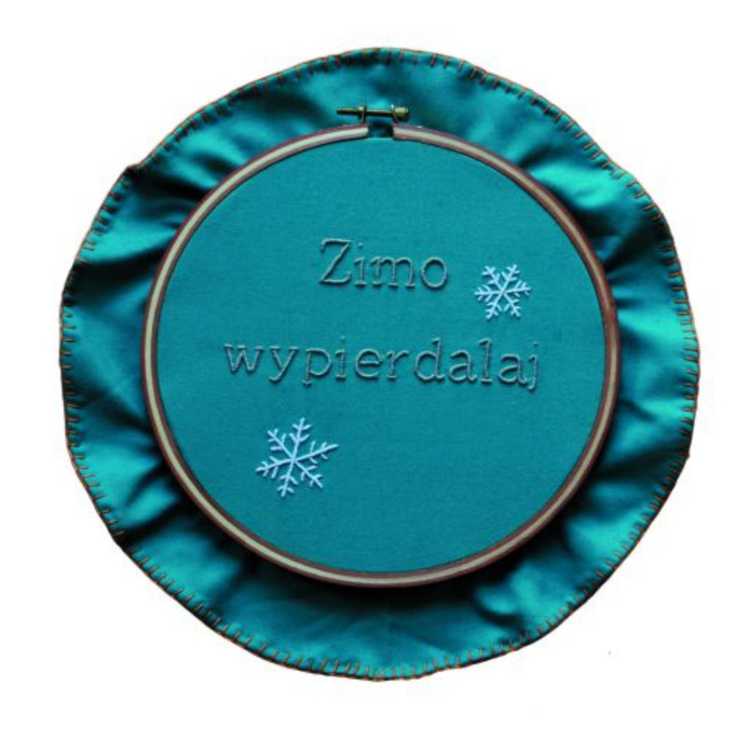 I never saw my mother or my grandmother embroider. I started embroidering in 2008, during Uszyj dom kultury/Sew yourself a community centre, when I spent my days sewing and smoking cigarettes. In moments of idleness, I read the graffiti covering the side wall of the neighbouring block of flats. As I sewed, smoked, and read, I wondered how to transcribe these words written on the walls. Maybe that’s why I chose to use needle and thread. Since then, I have treated embroidery as a writing technique. I examine how words can function in different spaces, and what kind of relationship is forged between content and form. My collection of embroidered works now includes dozens of pieces.