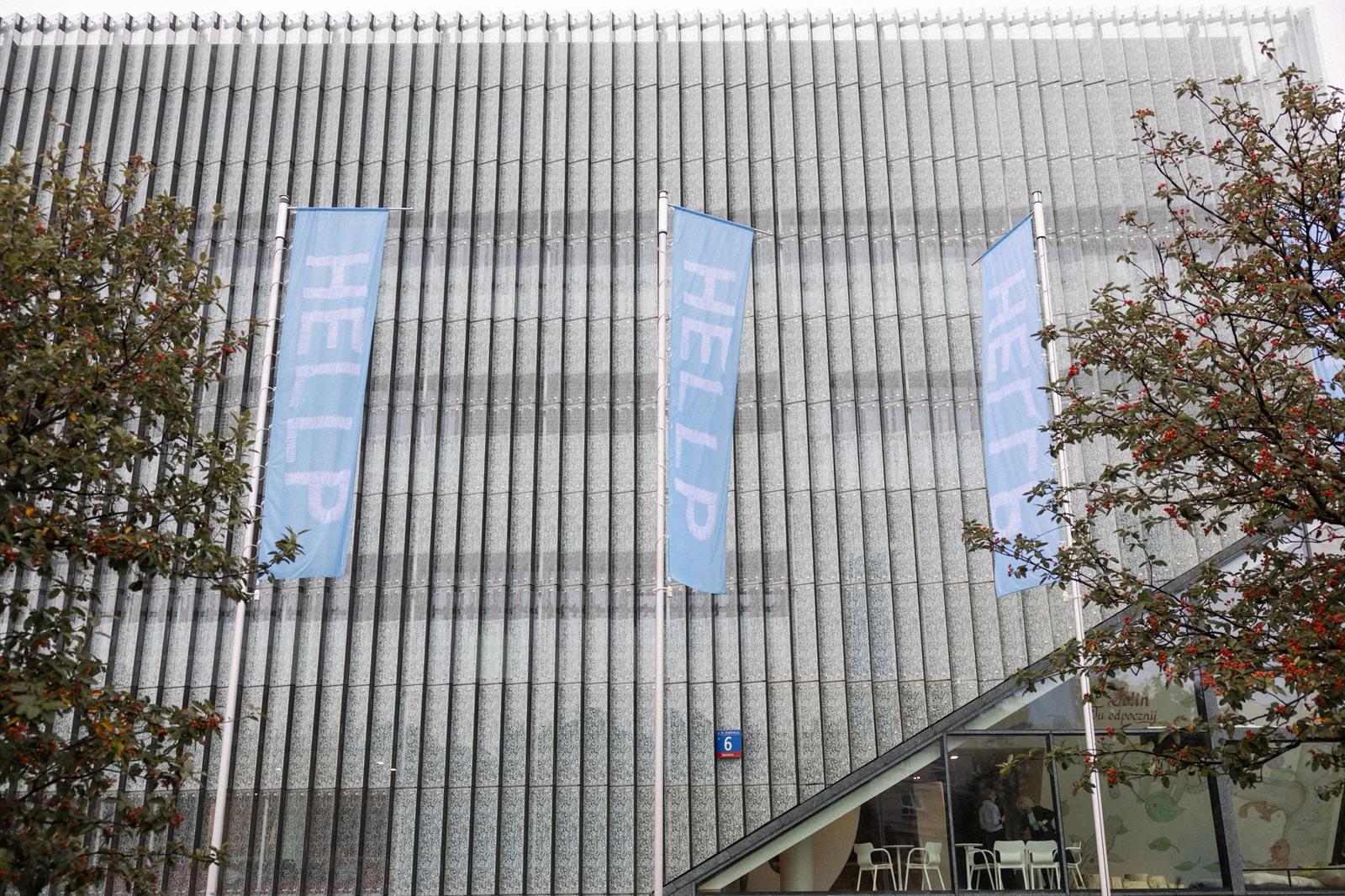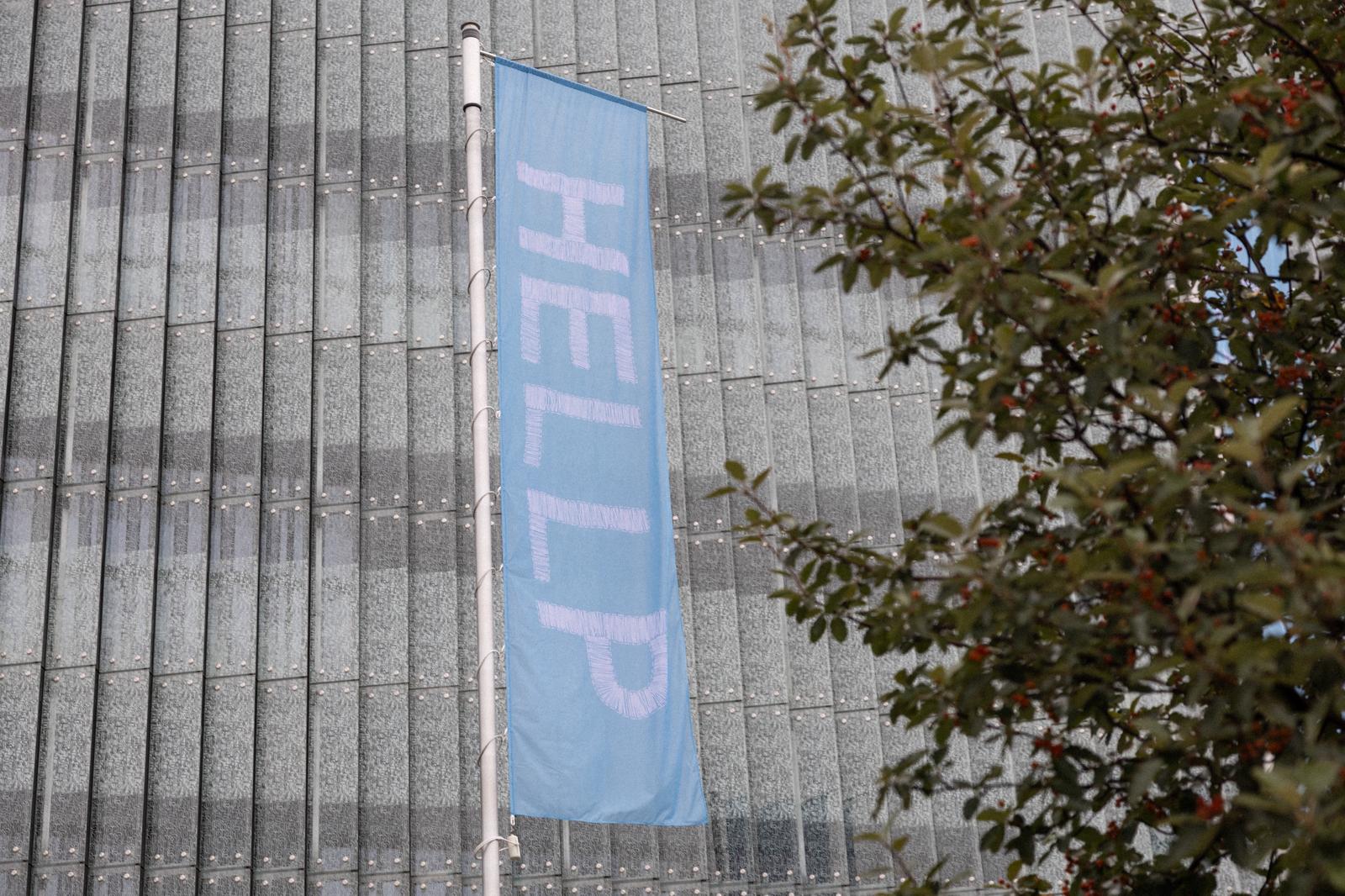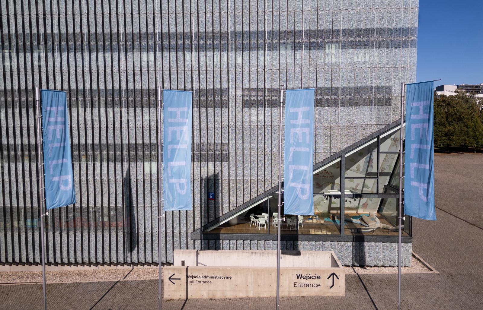Umieszczenie flagi na maszcie przed Muzeum POLIN dodatkowo wzmacnia ten sens. W przestrzeni naznaczonej historią przemocy, wykluczenia i Zagłady praca działa jak uniwersalny znak ostrzegawczy. Stawia widza w niewygodnej roli świadka i zadaje proste, ale trudne pytania. Kogo słyszymy, gdy ktoś woła o pomoc. I czy potrafimy odpowiedzieć, biorąc odpowiedzialność za konsekwencje własnych działań lub zaniechań.
