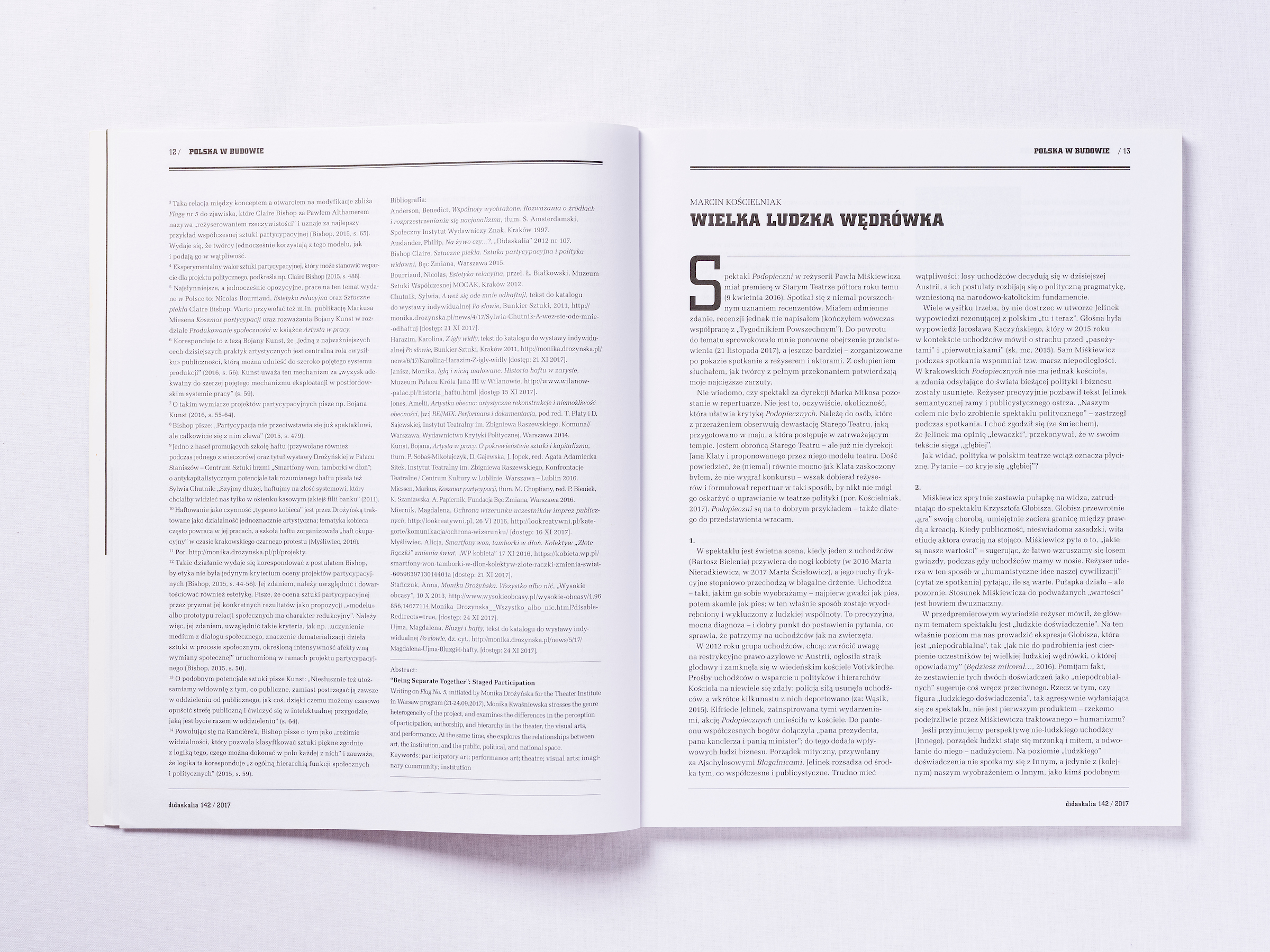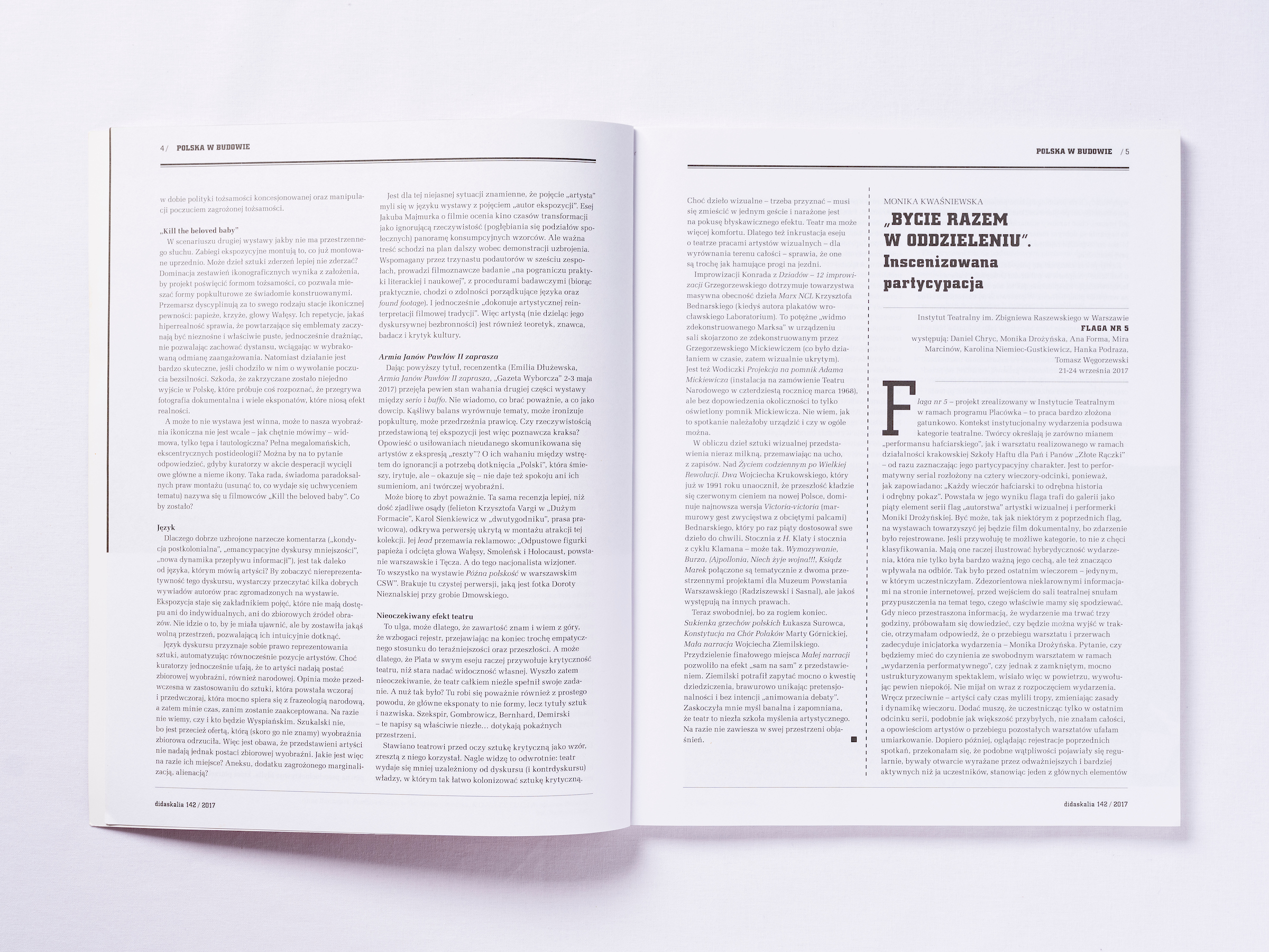 Artykuł został opublikowany w kwartalniku „Didaskalia. Gazeta Teatralna” 12/2017, będącym pismem naukowo-publicystycznym poświęconym teatrowi i sztukom performatywnym.